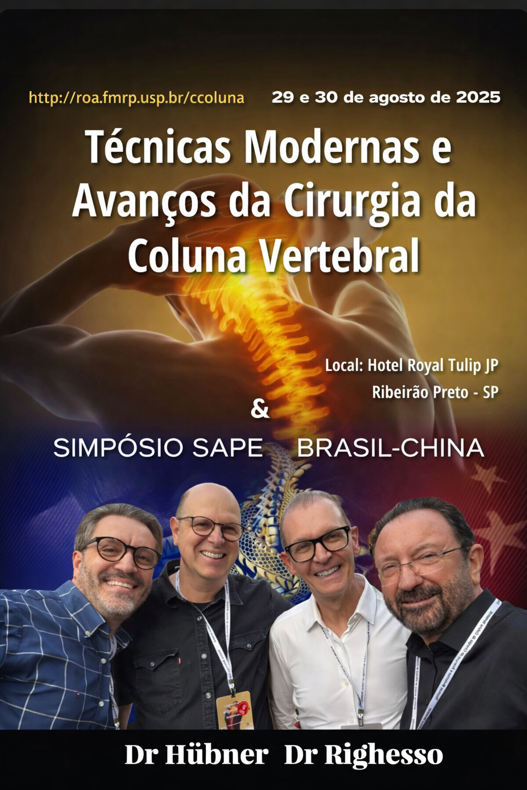 Nos dias 29 e 30 de agosto de 2025, o Hotel Royal Tulip JP, em Ribeirão Preto (SP), receberá um dos mais importantes encontros da área médica: o Simpósio Brasil-China sobre Técnicas Modernas e Avanços da Cirurgia da Coluna Vertebral.